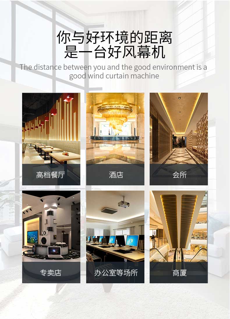 減少室內(nèi)冷氣外流,節(jié)省空調(diào)耗電,適用于需不斷開關(guān)門的餐廳、商店等場所。夏天走進(jìn)各種開設(shè)冷氣的場所,入口處清涼的強(qiáng)風(fēng)讓顧客頓感涼爽愉悅。
